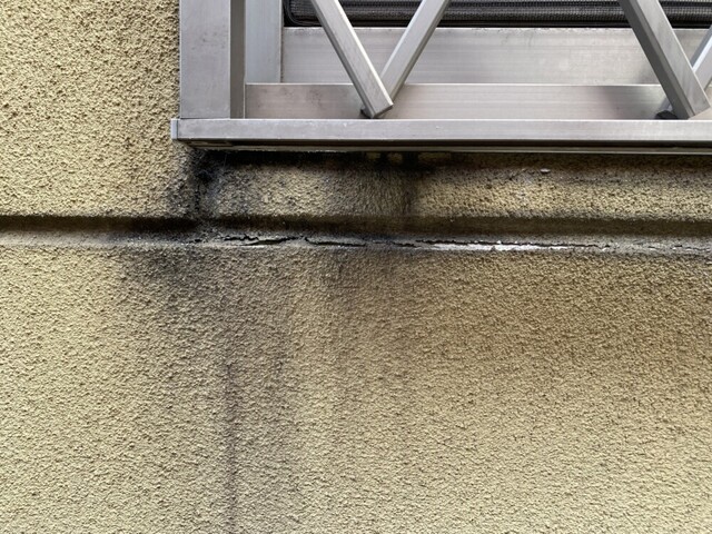 施工前は、サッシからの雨垂れによってコーキングの劣化が見られます。